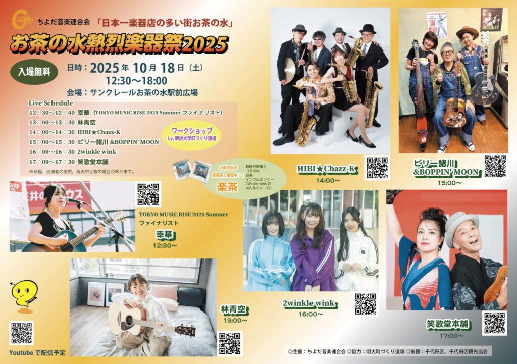 2025/10/18、サンクレールお茶の水駅前広場にて「お茶の水熱烈楽器祭2025」の開催です。